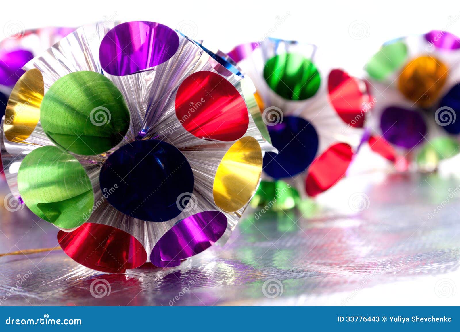 Motley Christmas Decoration On The Silver Material Stock Photos ...